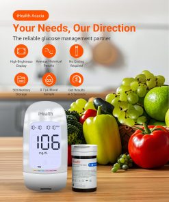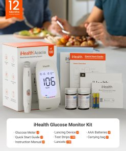 iHealth Acacia Blood Glucose Monitor Kit, 100 Glucometer Strips, 100 Lancets, 1 Blood Sugar Monitor, 1 Lancing Device, 1 Travel Bag, No Coding, Portable Blood Sugar Testing Kit, Diabetes Testing